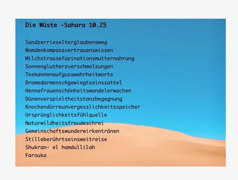 Es war die aufregendste Reise unseres Lebens mit Hafid und seinem Team durch die Wüste zu ziehen. Stets fühlten wir uns sicher und gut aufgehoben. Erstaunlich war die Geschwindigkeit, mit der das Team die Zelte auf- und abbaute. Das Essen war großartig sowie die Gastfreundschaft. Die Kamele trugen uns, wenn die Füsse schwer wurden. Die Perspektiven werde ich für immer in meinem Kopf haben. Nomaden, Palmen, Oasen, Fata Morgana, Fossilien, Kamele, Esel, uvm. Wir können nur allen empfehlen, diese Reise zu unternehmen, die mehr als ein Urlaub ist. Wir waren Teil einer Karawane:-) Sie war für uns auch eine Reise zu uns selbst. Herzlichen Dank für Alles!