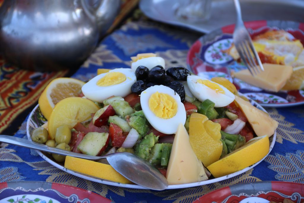 You spend the night under the stars or in a tent. Akabar – Sahara Treks provides both large desert tents and sturdy two-person tents. Mattresses and blankets are also provided.